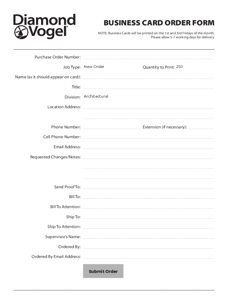BUSINESS CARD ORDER FORM