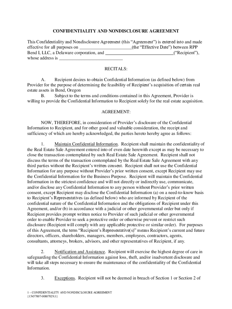 CONFIDENTIALITY AND NONDISCLOSURE AGREEMENT This Confidentiality and Nondisclosure Agreement (this Agreement) is entered into and made effective for all purposes on ___(the Effective Date) between