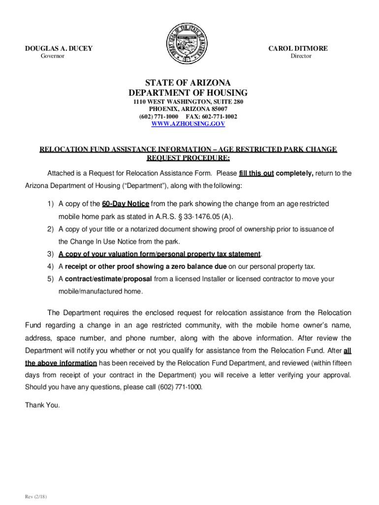 DOUGLAS A. DUCEYCAROL DITMOREGovernorDirectorSTATE OF ARIZONA