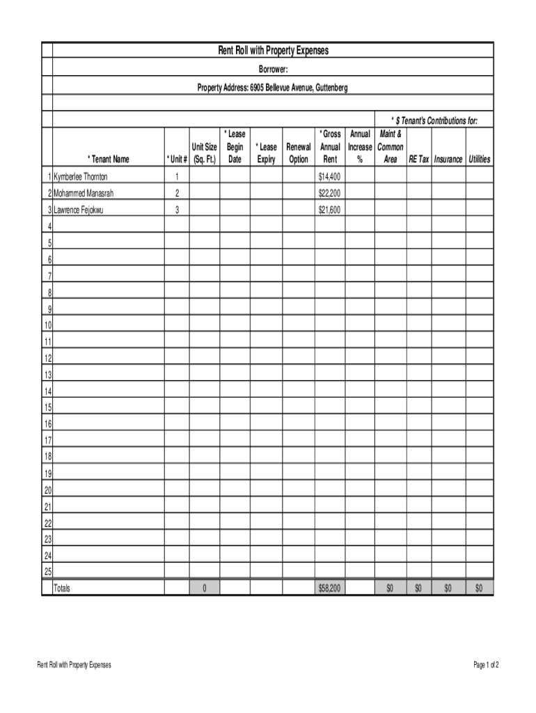 Rent Roll with Property Expenses Borrower: Property Address: 6905 Bellevue Avenue, Gutenberg* Tenant Name* Unit #Unit Size (Sq. Ft.)* Lease Begin Date* Lease ExpiryRenewal Option* Gross Annual Rent1