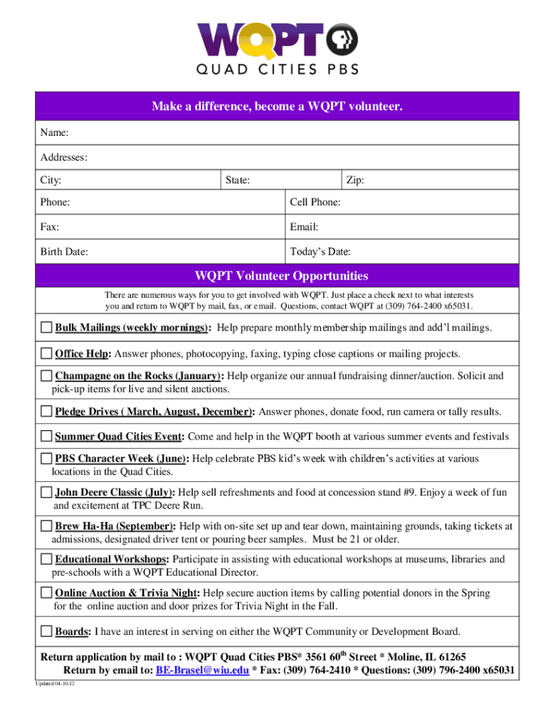 Fill out your wqpt volunteer opportunities online with pdfFiller!