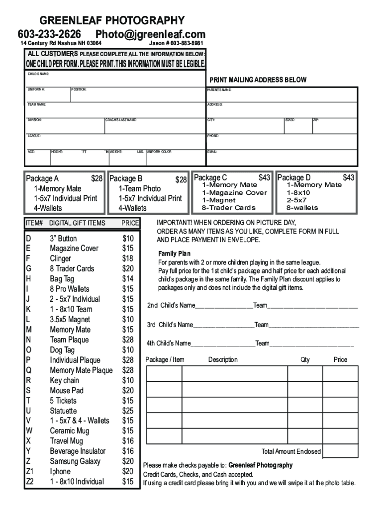 14th Century Rd Nashua NH 03064Jason # 6038838981ALL CUSTOMERS PLEASE COMPLETE ALL THE INFORMATION BELOW:ONE CHILD PER FORM. PLEASE PRINT. THIS