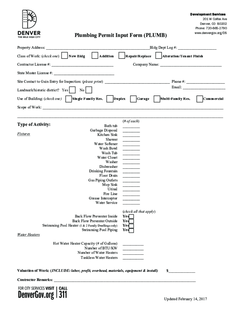 Get the free 4-Plumbing Permit Input Form
