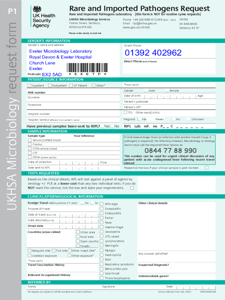 Rare and Imported Pathogens RequestUKHSA Microbiology request formP1Rare and Imported Pathogens Laboratory [this form is NOT for routine Lyme requests]