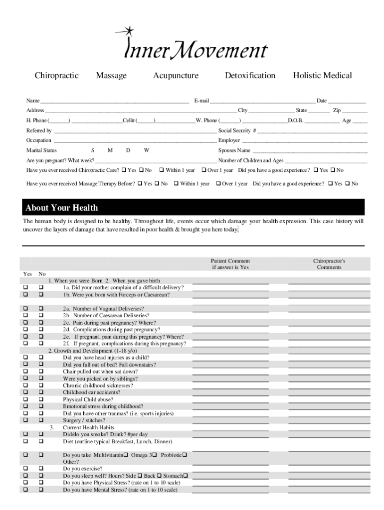 ChiropracticMassageAcupunctureDetoxificationHolistic Medicalize ___ Email ___ Date ___