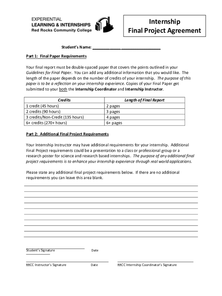 Internship Final Project Agreement Students Name: ___ ___ Part 1: Final Paper Requirements Your final report must be double-spaced paper that covers the points outlined in your Guidelines for Final