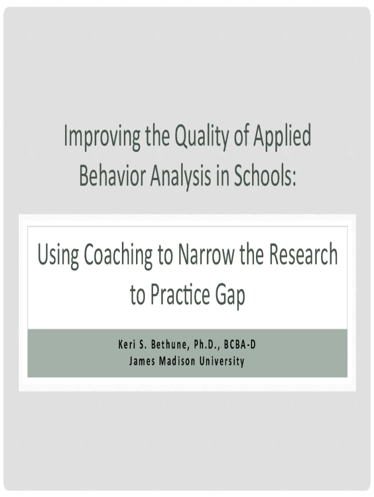 Improving the Quality of AppliedBehavior Analysis in Schools:Using Coaching to Narrow the Research to Practice Gap Keri S. Bethune, Ph.D., BCBADJames Madison University RST A disclosureINTRODUCTION
