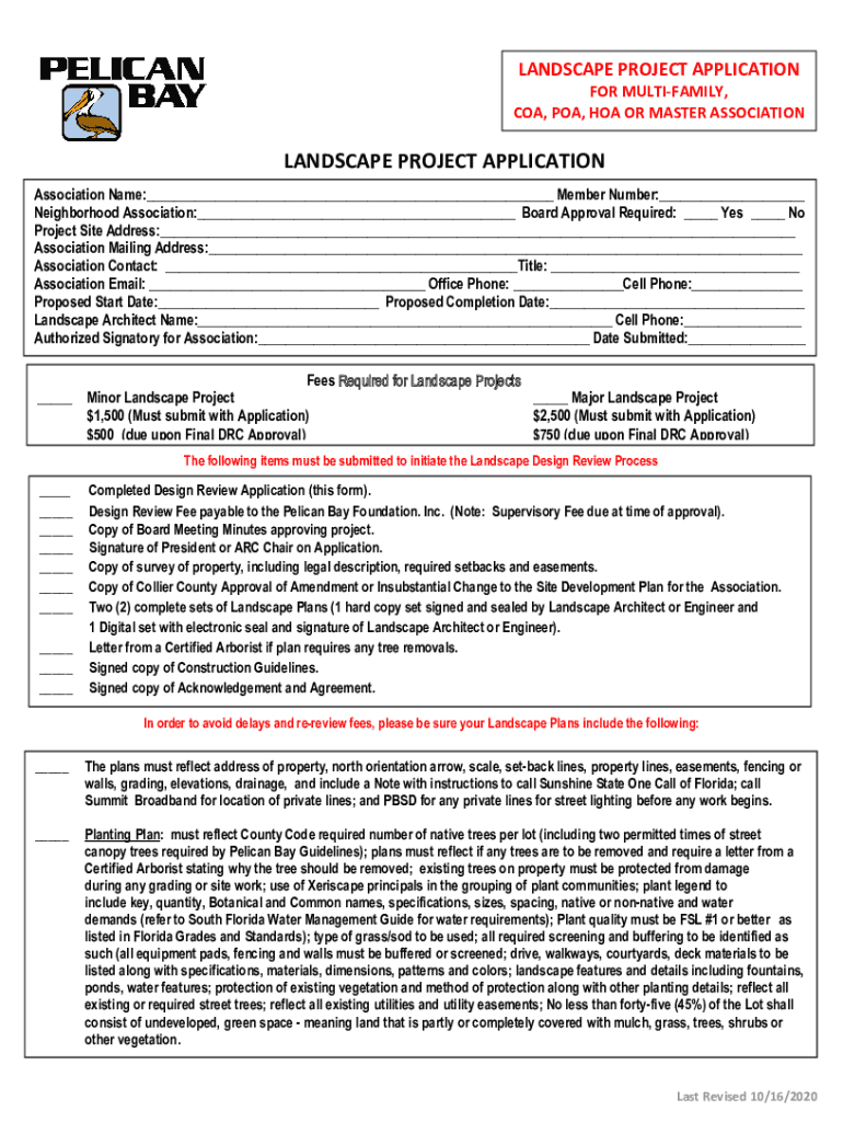 COA, POA, HOA OR MASTER ASSOCIATIONLANDSCAPE PROJECT APPLICATION