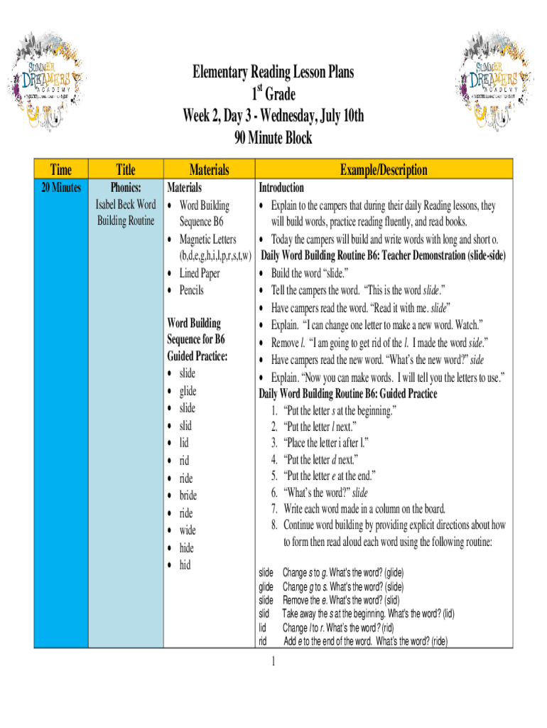Get the free Elementary Reading Lesson Plans 1 Grade Week 2, Day 3