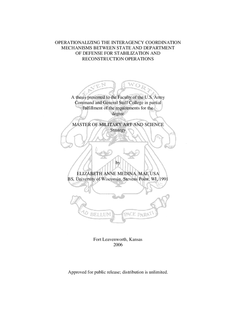 OPERATIONALIZING THE INTERAGENCY COORDINATION MECHANISMS BETWEEN STATE AND DEPARTMENT OF DEFENSE FOR STABILIZATION AND RECONSTRUCTION OPERATIONS thesis presented to the Faculty of the U.S. Army Command