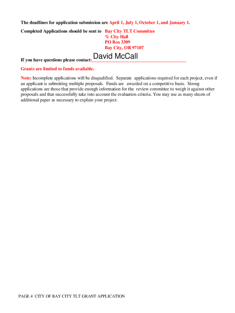 CITY OF BAY CITY TLT GRANT APPLICATION Packet Please read before submitting an applicationOVERVIEW: The Bay City TLT Committee Grant provides funding for tourism related projects in Bay City. Eligible