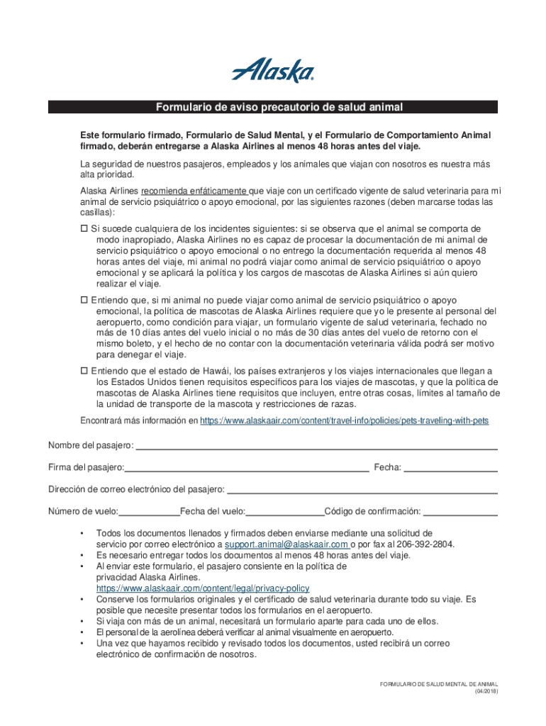 Obtener el gratis Animal Mental Health Form - resource alaskaair