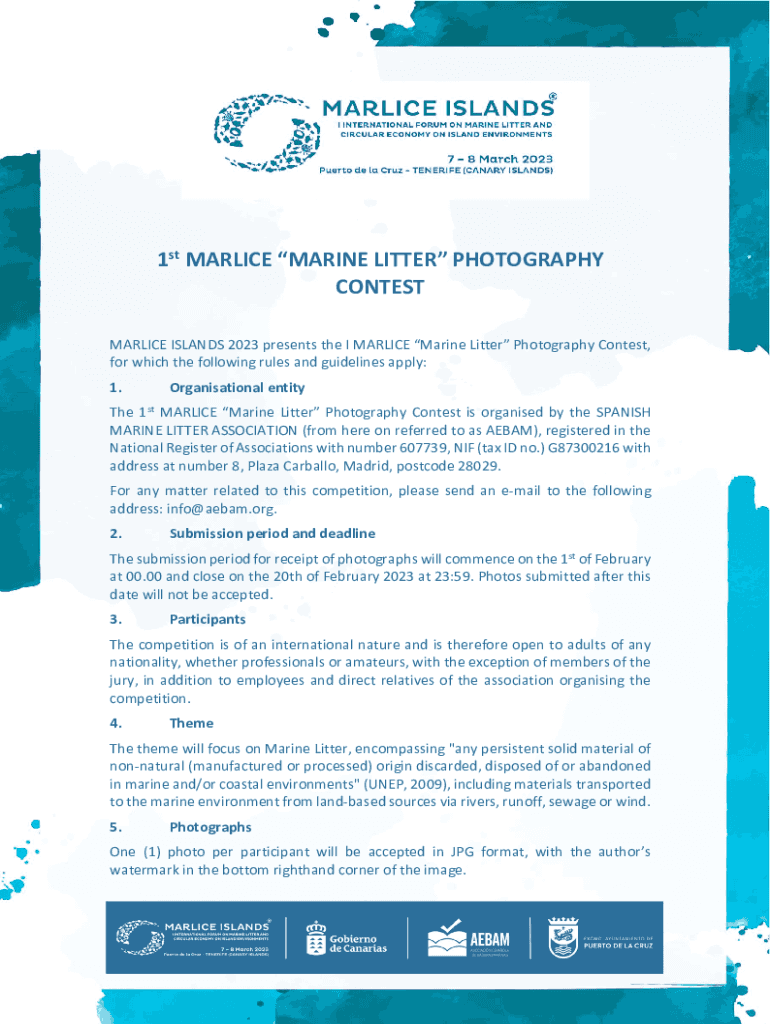 1st MALICE MARINE LITTER PHOTOGRAPHY CONTEST MALICE ISLANDS 2023 presents the MALICE Marine Litter Photography Contest, for which the following rules and guidelines apply: 1. Organizational entity
