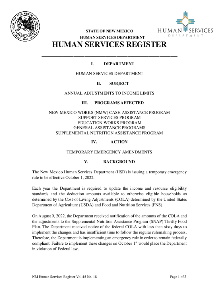 HUMAN SERVICES DEPARTMENTHUMAN SERVICES REGISTER