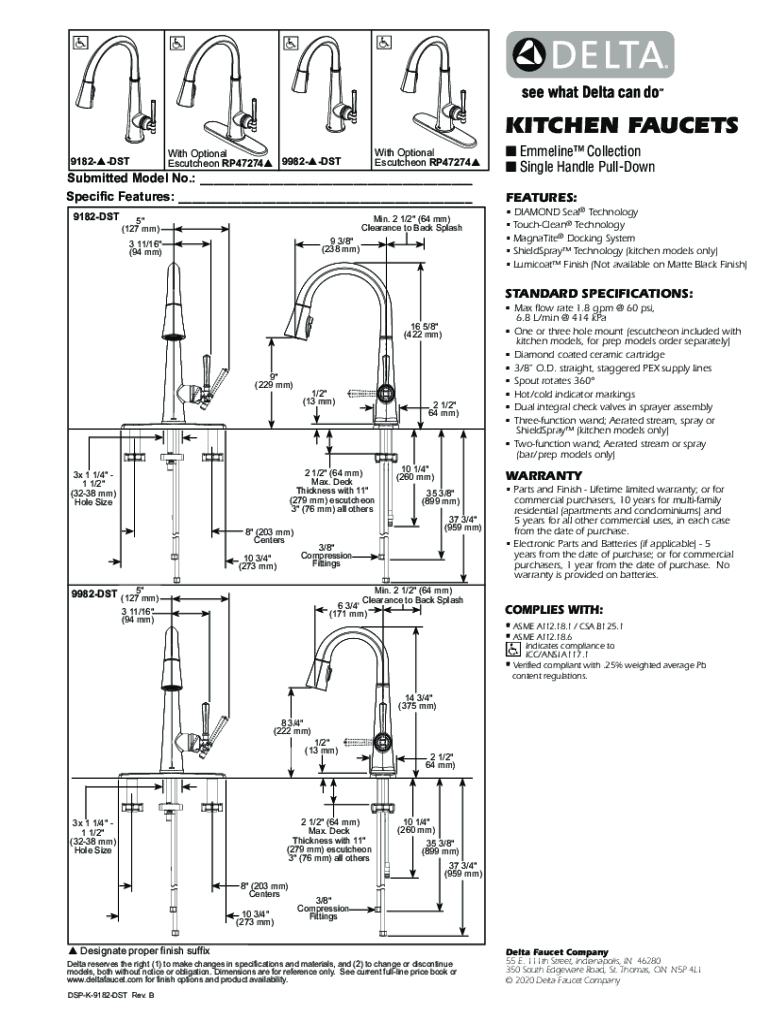 Get the free Delta 9182-AR-PR-DST Emmeline 1.8 GPM Single Hole Pull