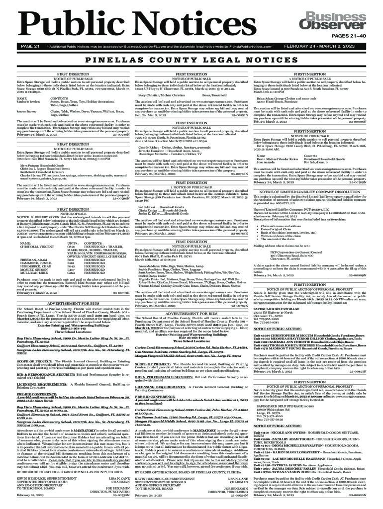 Public Notices PAGE 21PAGES 2140**Additional Public Notices may be accessed onBusinessObserverFL.command the statewide legal notice website, FloridaPublicNotices.com**FEBRUARY 24 MARCH 2, 2023PINELLAS