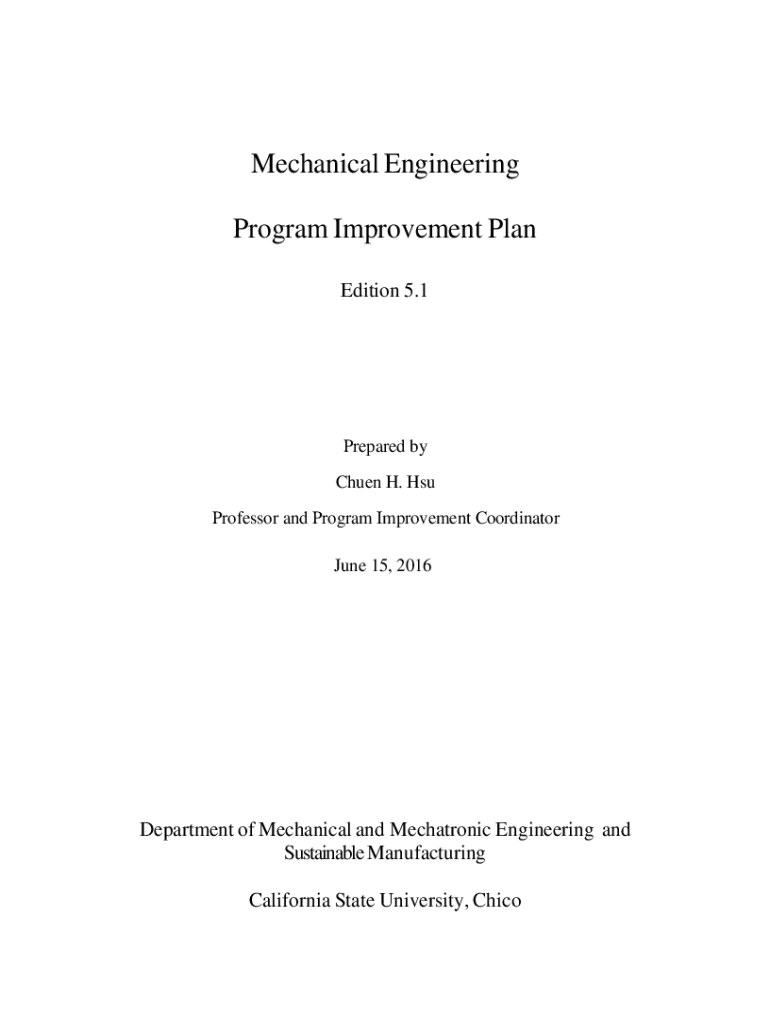 Get the free Mechanical Engineering Program Improvement Plan