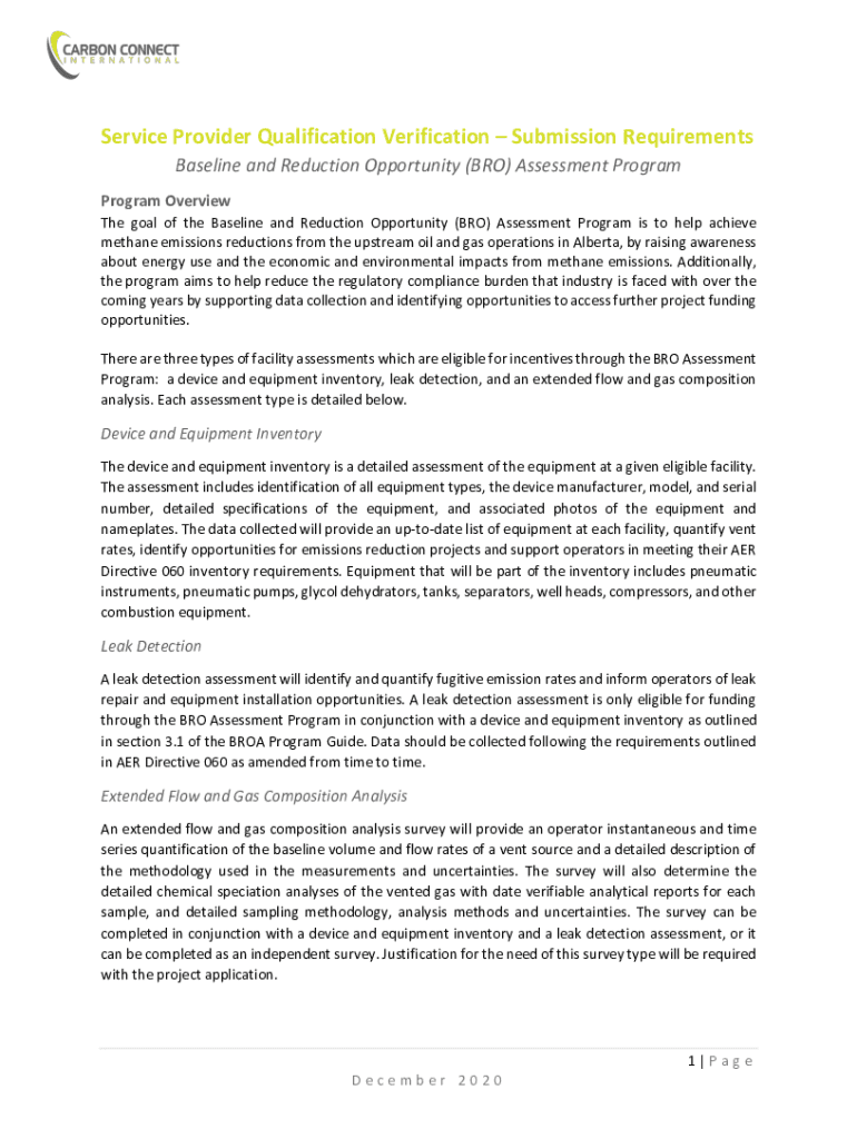 Service Provider Qualification Verification Submission Requirements Baseline and Reduction Opportunity (BRO) Assessment Program Overview The goal of the Baseline and Reduction Opportunity (BRO) Assessment
