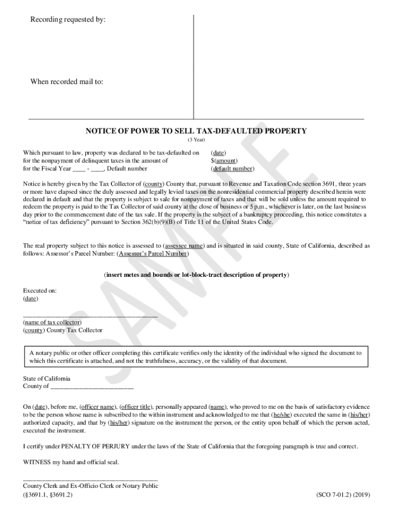 Get the free NOTICE OF POWER TO SELL TAX DEFAULTED PROPERTY (3 Year)