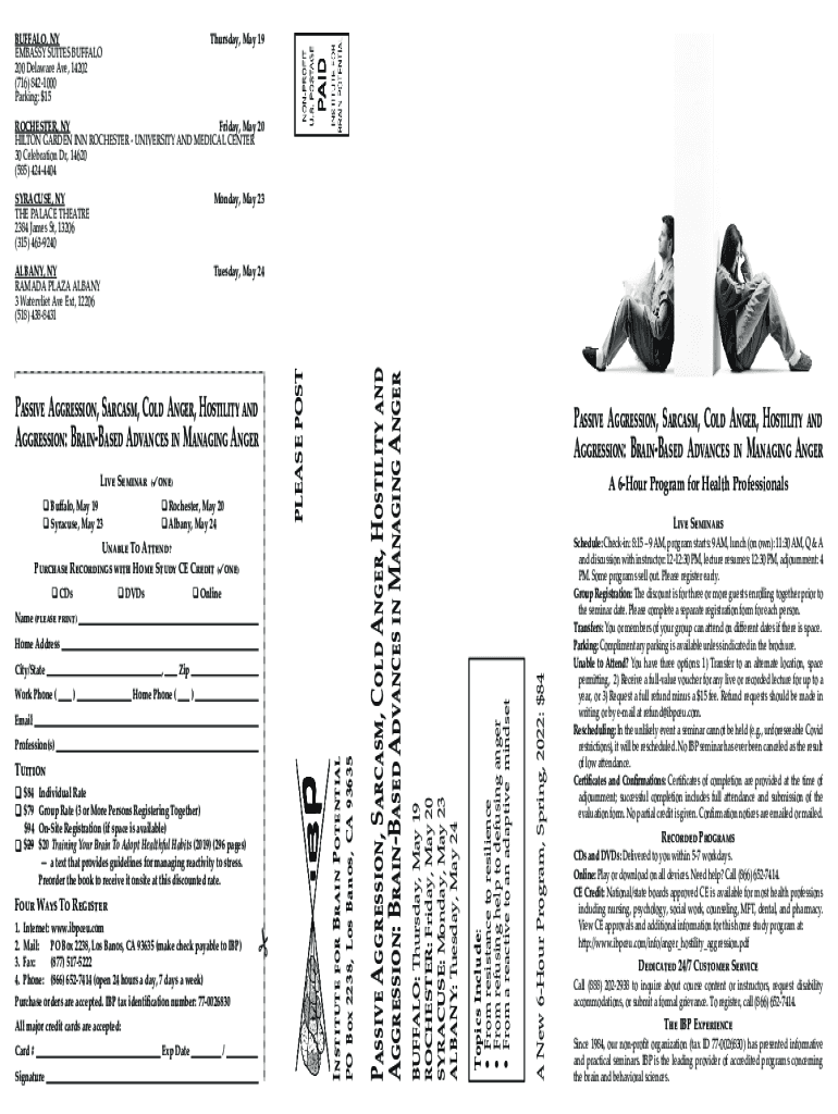 Parking: $15Thursday, May 19Passive Aggression, Sarcasm, Cold Anger, Hostility and