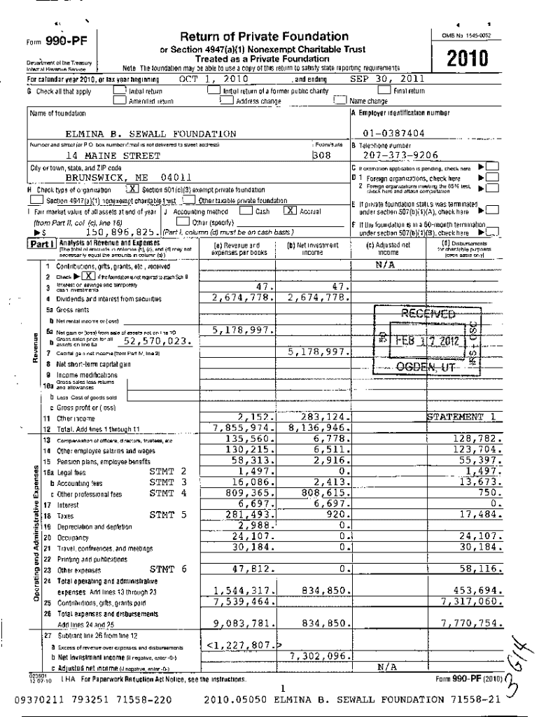 ... FormReturn of Private Foundation990PFOMSor Section 4947(a)(1) Nonexempt Charitable Trust Treated as a Private FoundationDepartment of the Treasury Internal Revenue Serviced DG Check all that apply