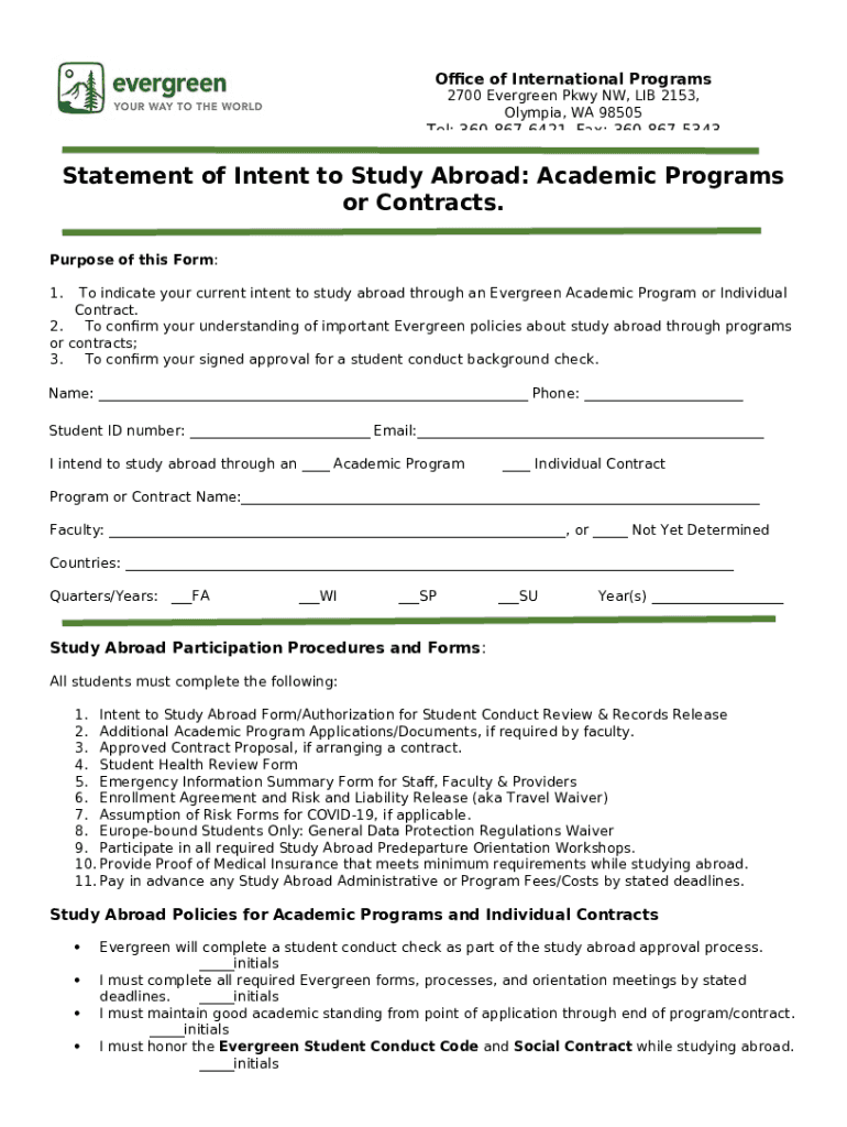 What is Statement of Intent to Study Abroad: Academic Programs or ... Form?