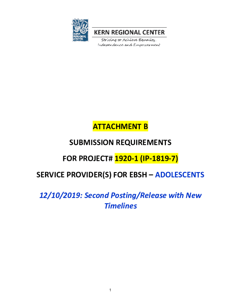 ATTACHMENT B SUBMISSION REQUIREMENTS FOR PROJECT# 19201 (IP18197) SERVICE PROVIDER(S) FOR BSH ADOLESCENTS 12/10/2019: Second Posting/Release with New Timelines1PROVIDER(S): Project# 19201 (IP18197)