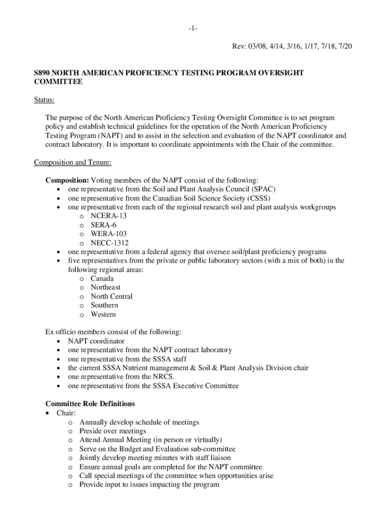 1Rev: 03/08, 4/14, 3/16, 1/17, 7/18, 7/20S890 NORTH AMERICAN PROFICIENCY TESTING PROGRAM OVERSIGHT COMMITTEE Status: The purpose of the North American Proficiency Testing Oversight Committee is to