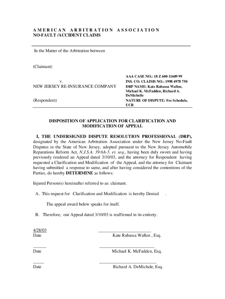 Get the free NO-FAULT/ACCIDENT CLAIMS In the Matter of the ...