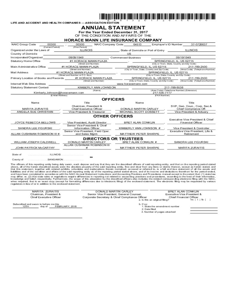 LIFE AND ACCIDENT AND HEALTH COMPANIES ASSOCIATION EDITIONANNUAL STATEMENT
