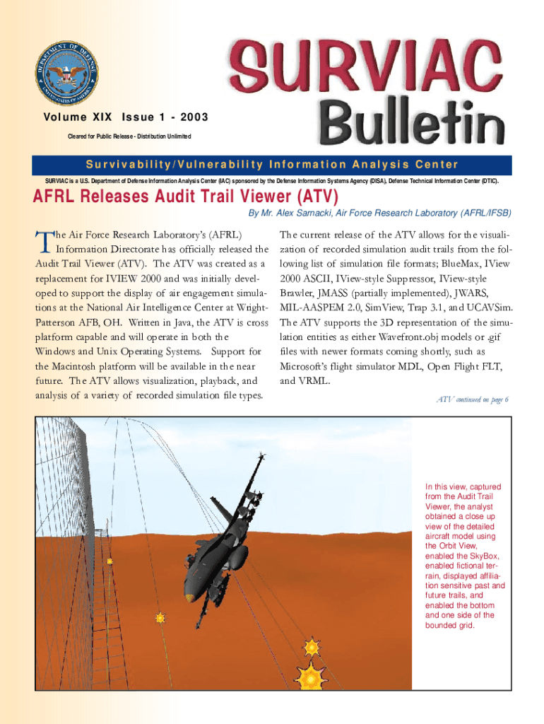 Vol u m e × I × I s s u e 1 2 0 0 3 Cleared for Public Release Distribution UnlimitedSurvivability/Vulnerability Information Analysis Center SURVIVAL is a U.S. Department of Defense Information