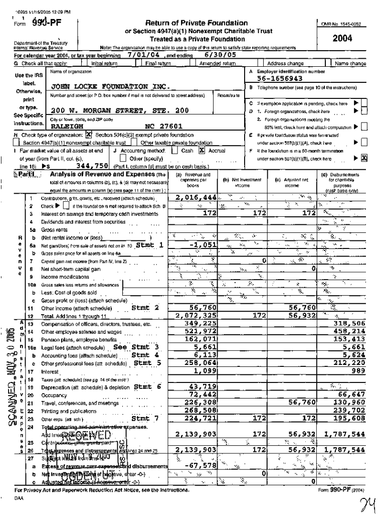 Otherwise, Return of Private Foundationprint7/01/04, andendin4or tax6/30/05Name