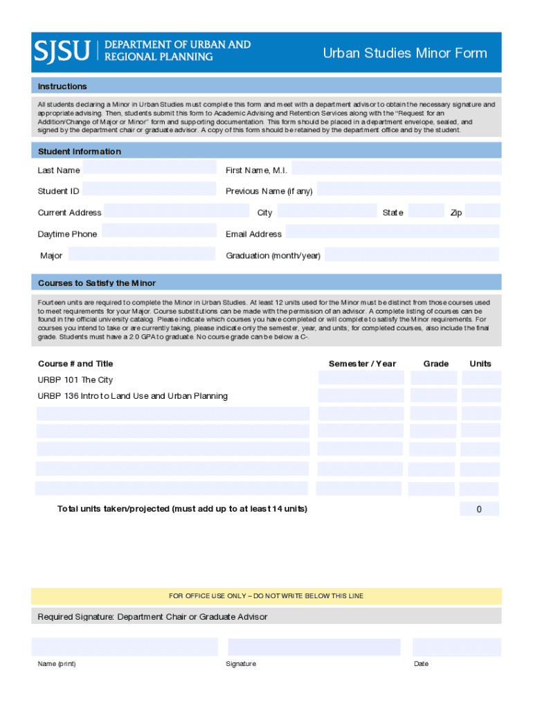 Edit your urban studies minor form online