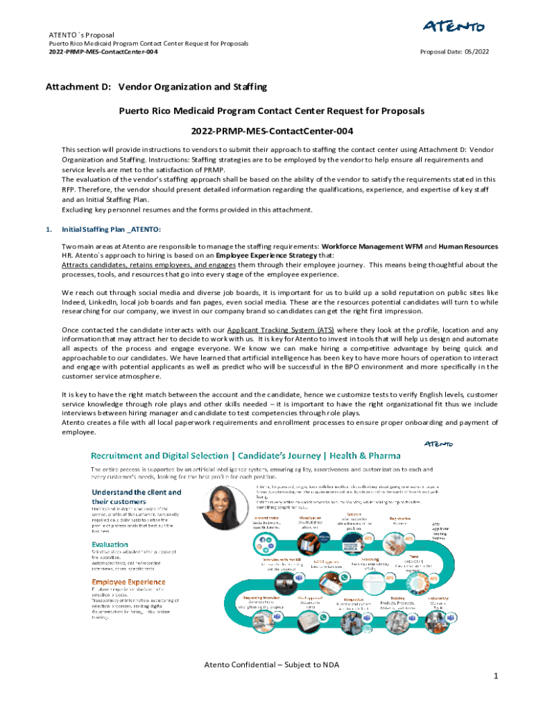 AGENT s Proposal Puerto Rico Medicaid Program Contact Center Request for Proposals 2022PRMPMESContactCenter004Proposal Date: 05/2022Attachment D: Vendor Organization and Staffing Puerto Rico Medicaid