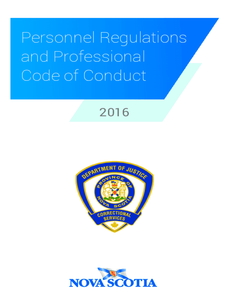 Personnel Regulations and Professional Code of Conduct 2016 Crown copyright, Province of Nova Scotia, 2001, 2002, 2007, 2016. For further information contact: Department of Justice Correctional Services
