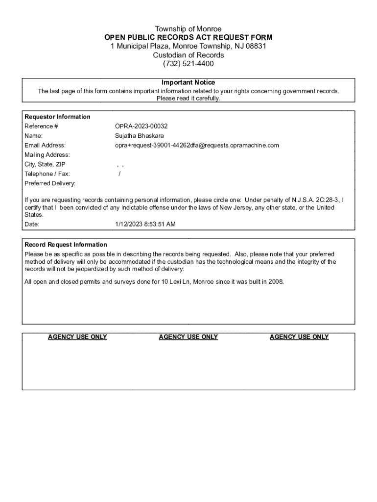 Get the free Township of Monroe OPEN PUBLIC RECORDS ACT ...
