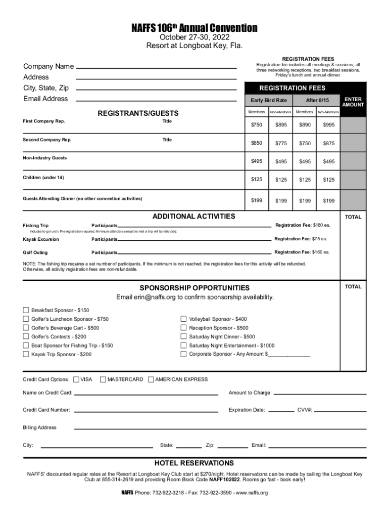 GAFFS 106th Annual Convention October 2730, 2022 Resort at Longboat Key, Fla. REGISTRATION FEES Registration fee includes all meetings & sessions, all three networking receptions, two breakfast sessions,