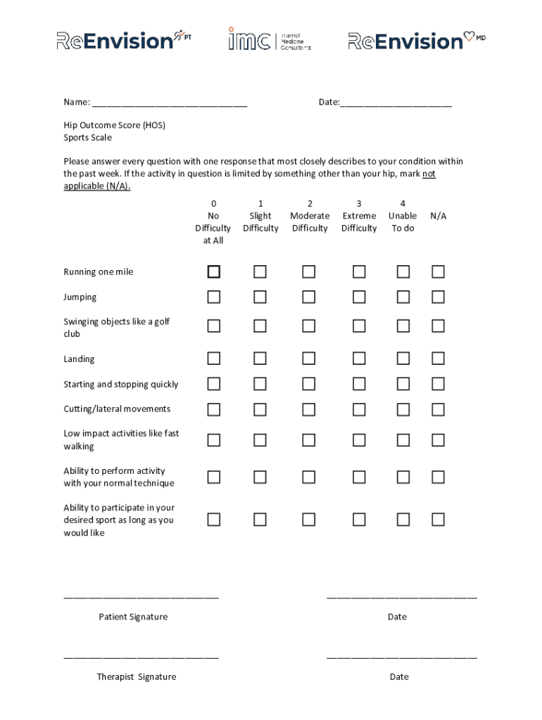 Get the free HOS.pdf - Name: Date: Hip Outcome Score HOS Activity of...
