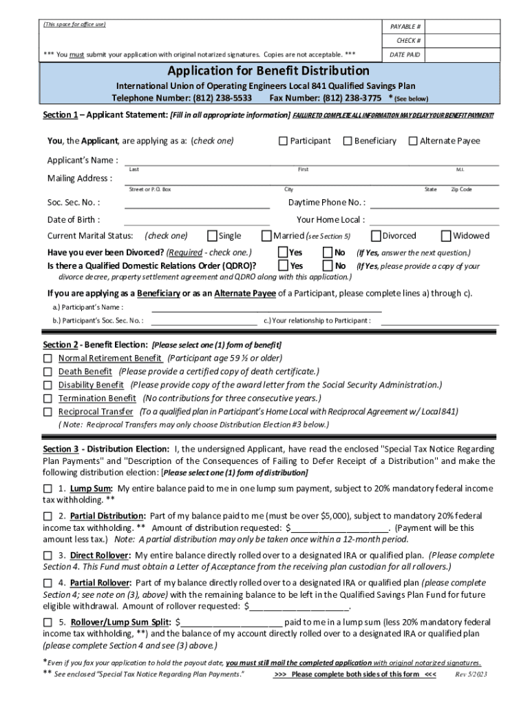 CHECK #*** You must submit your application with original notarized signatures. Copies are not acceptable. ***DATE Misapplication for Benefit Distribution