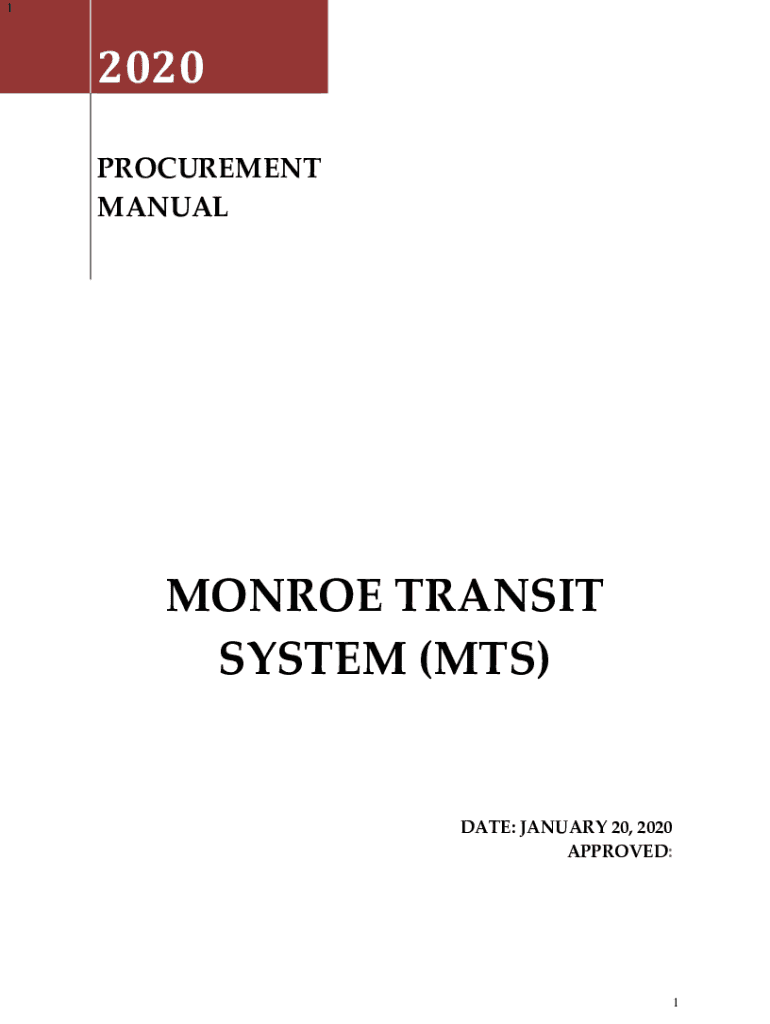 12020 PROCUREMENT MANUALMONROE TRANSIT SYSTEM (MTS)DATE: JANUARY 20, 2020, APPROVED:1Monroe Transit System Procurement Manual Table of Contents 1.INTRODUCTION..........................................................................................................................
