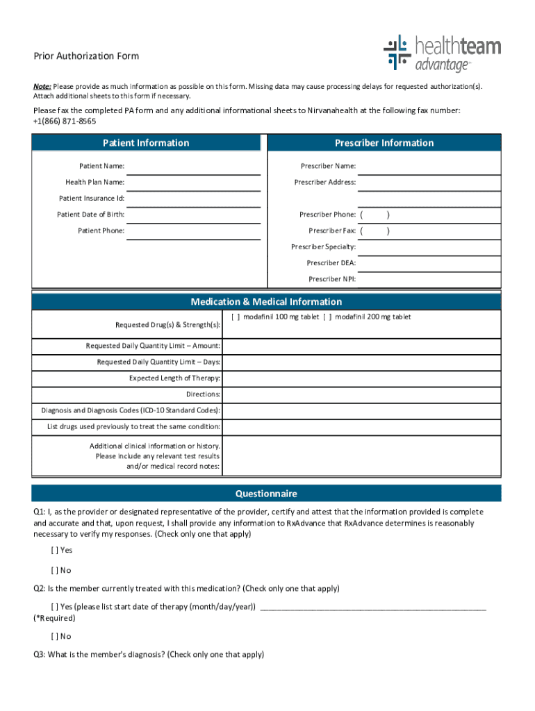 Prior Authorization Form Note: Please provide as much information as possible on this form. Missing data may cause processing delays for requested authorization(s). Attach additional sheets to this