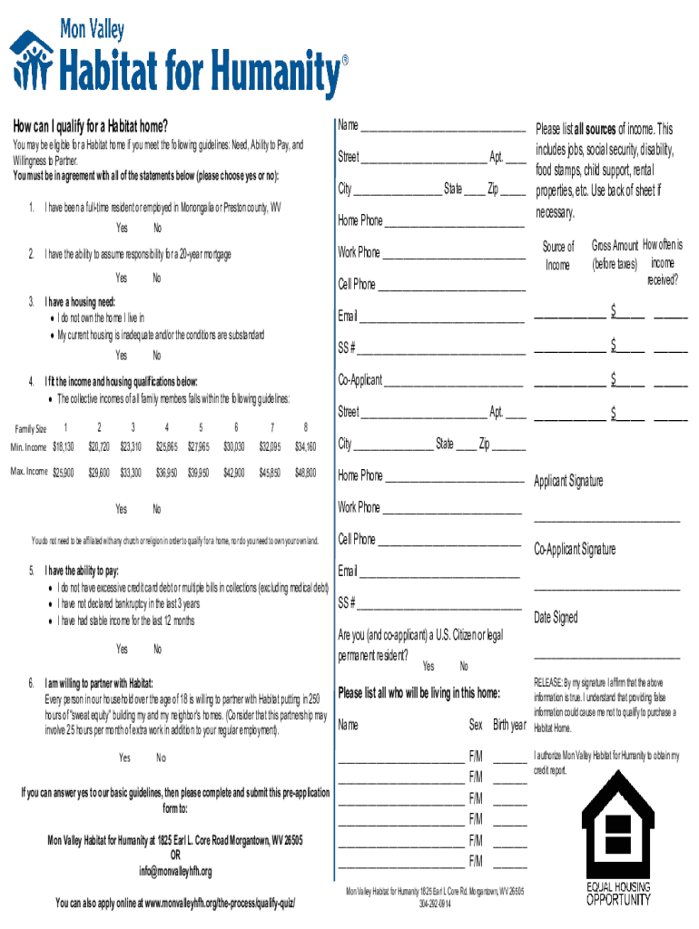 How can I qualify for a Habitat home? Name ___Please list all sources of income. This Street ___ Apt. ___ includes jobs, social security, disability, food stamps, child support, rental City ___ State