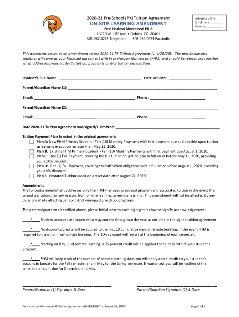 202021 Preschool (PK) Tuition Agreement