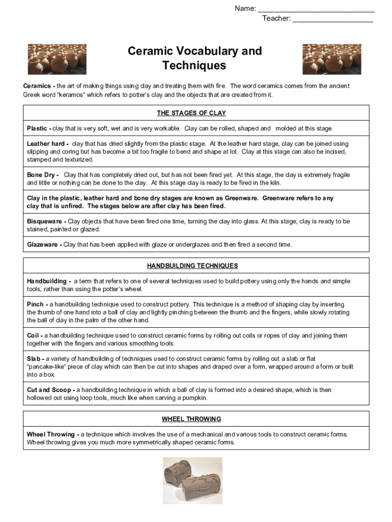 Educators who teach ceramics and want to provide comprehensive instruction on vocabulary and techniques to their students
