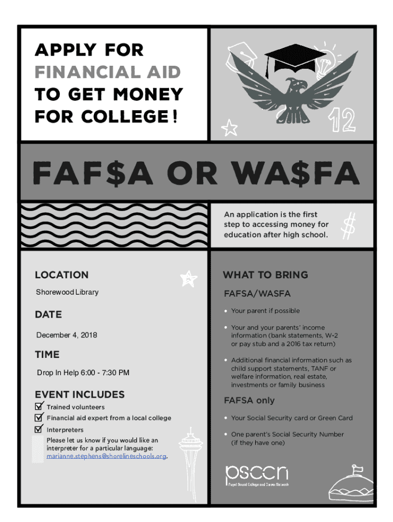 education after high school. LOCATIONAL TO BRINGShorewood LibraryFAFSA/WASFADATEYour