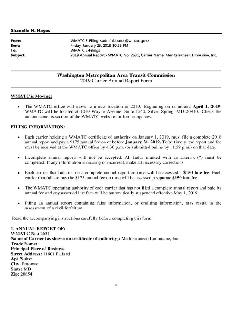 Washington Metropolitan Area Transit Commission 2019 Carrier Annual Report Form WHAT is Moving: The WHAT office will move to a new location in 2019. Beginning on or around April 1, 2019, WHAT will