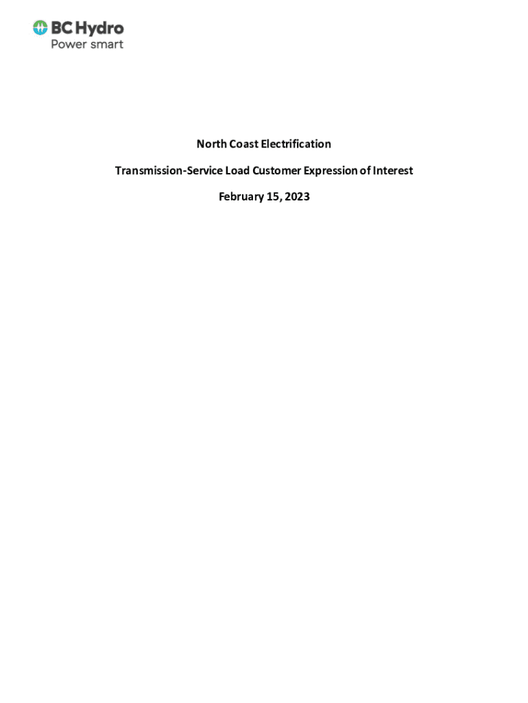 North Coast Electrification TransmissionService Load Customer Expression of Interest February 15, 2023North Coast Expression of Interest February 15, 2023Contents 1Introduction.......................................................................................................................