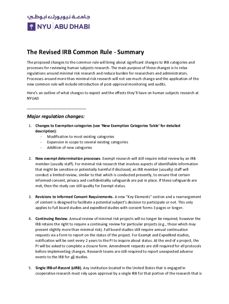 Get the free NYU Abu Dhabi Revised Common Rule Summary. NYU Abu Dhabi Revised Common Rule Summary