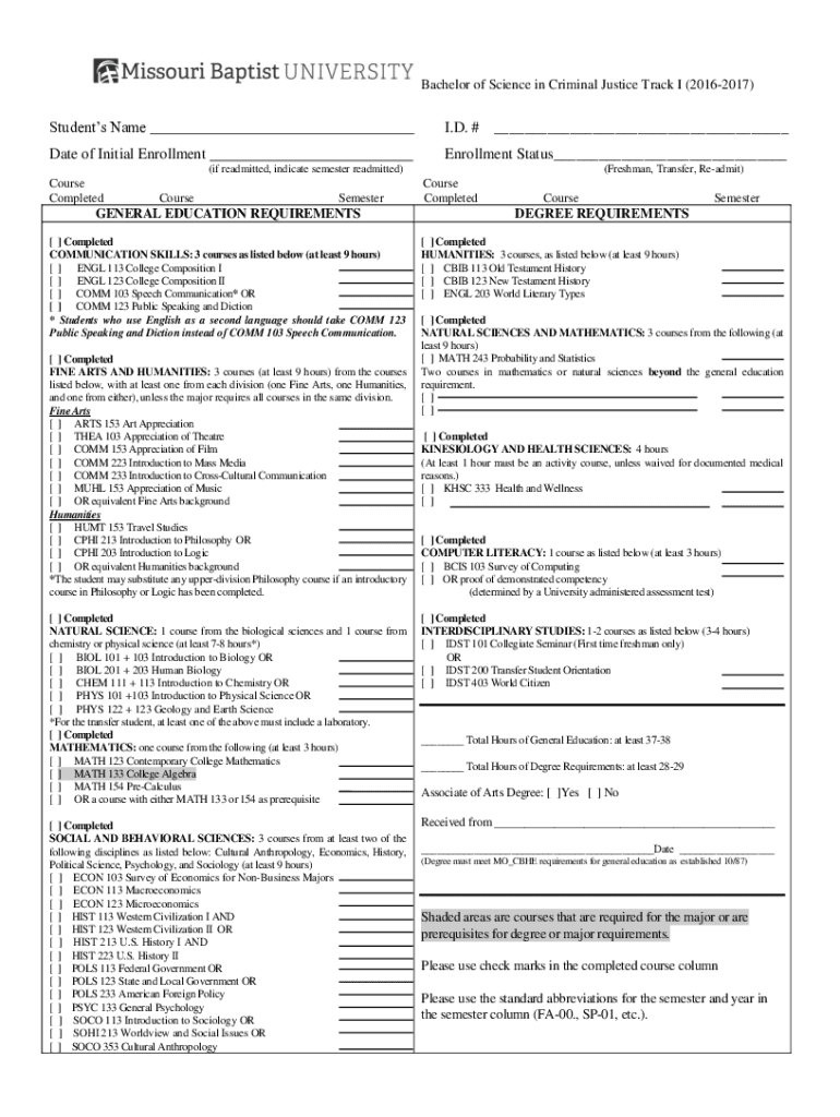 Bachelor of Science in Criminal Justice Track I (20162017)Students Name. D. # ___Date of Initial EnrollmentEnrollment Status___