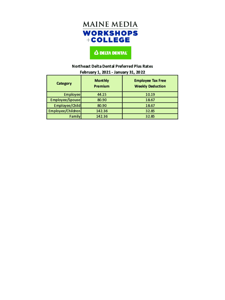 Get the free Northeast Delta Dental Preferred Plus Rates February 1, ...